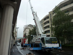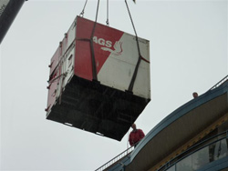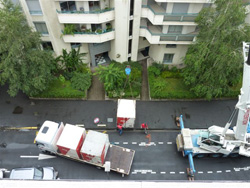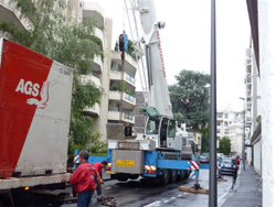 Access issues made the stairs unsuitable for a delivery in Clermont-Ferrand, France. Instead, the AGS team used a crane to reach the client’s terrace on the 8th floor and delivered the goods.