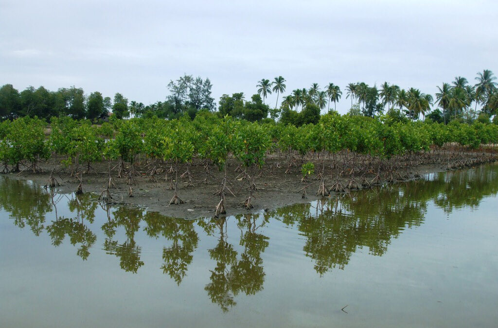 The tree-planting process begins with the extraction of propagules from trees in the region. These propagules are kept in a nursery for approximately three months until the seedlings have matured. The seedlings are then transported to the area and planted in places where currents and tides are strong. About 4 500 seedlings are planted per hectare. Mangrove forests are fast-growing and all newly planted trees are closely monitored for pests throughout the year.